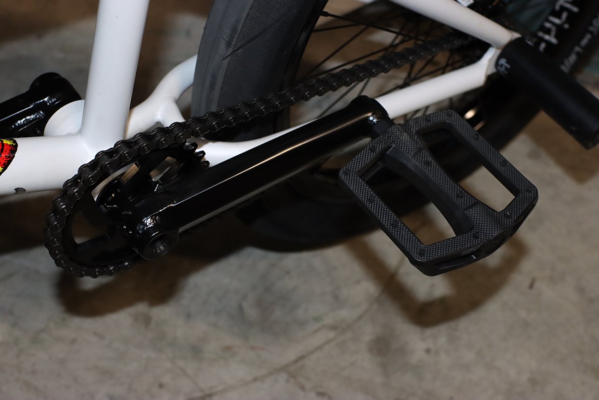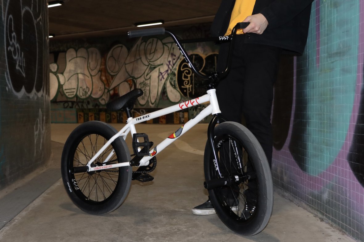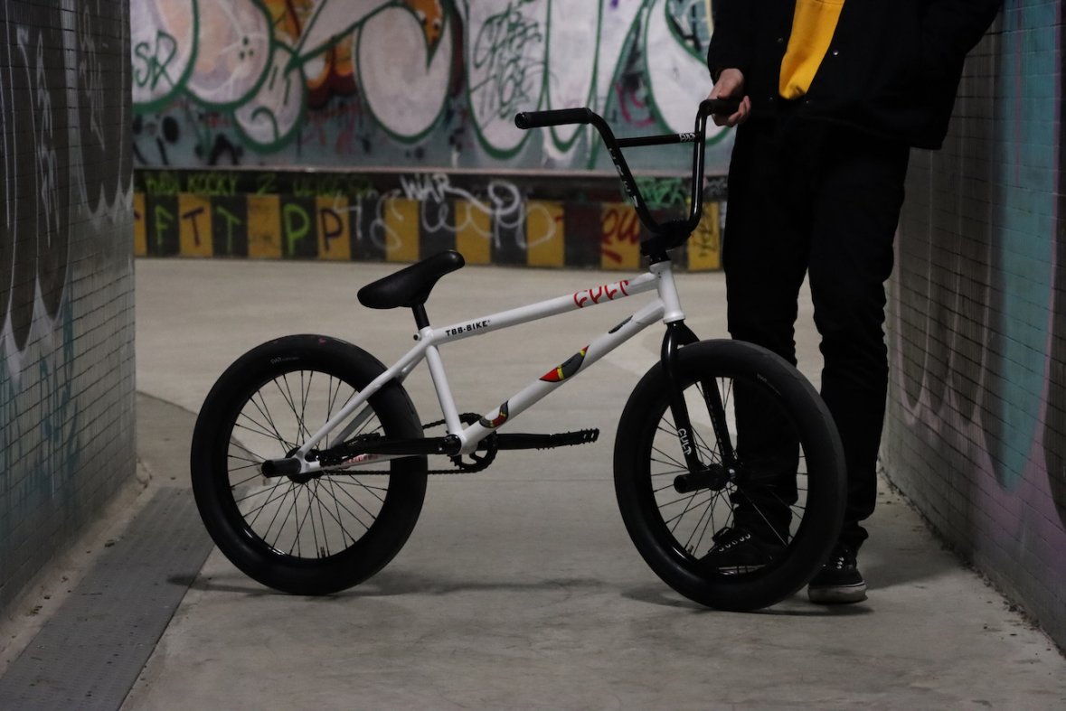 Cult HAWK Pearl frame 21" with 13.5 - 13.8 chain stay. This frame won't let you don't on jumps and you can still do a triple whip with it no problem. Totally universal, not too small, or large. Its even quite playful with my height. 74,5 head tube angle is something you don't see here that often. It took me quite a long time to get used to it on street. Street riders usually use 75 - 75.5, mostly because front wheel tricks. However, I can't emphasise how much I enjoy it in parks.